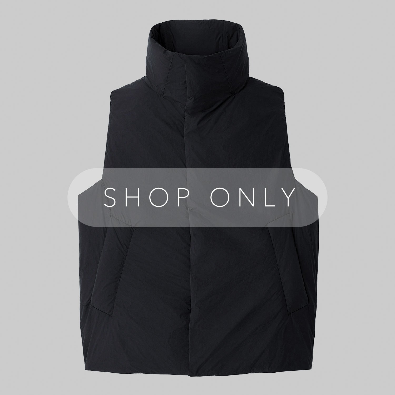 身幅はゆったりめ、綺麗な縦ラインを強調したシルエットが特徴のベスト。