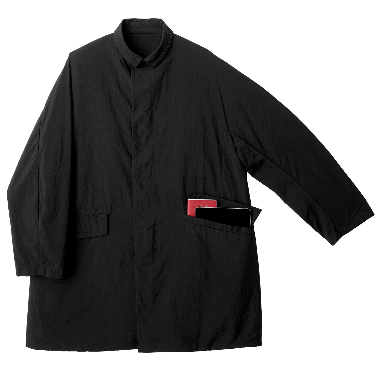 左右の内前身頃にはスモールデバイスの分別に便利なファスナーポケットを内蔵。iPhoneはもちろん、ペンやパスポート、チケット、旅先の現地通貨やカード、に至るまで細かく分別ができます。