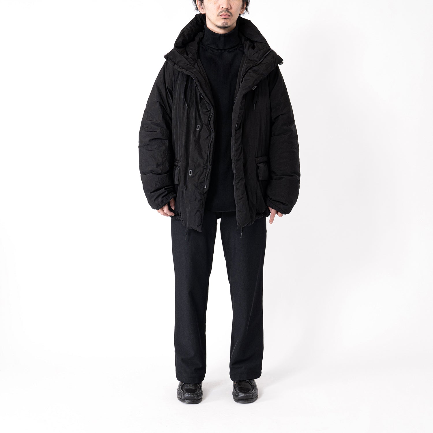 広めの身幅と短めの着丈でシルエットに特徴を持たせたフードブルゾン。