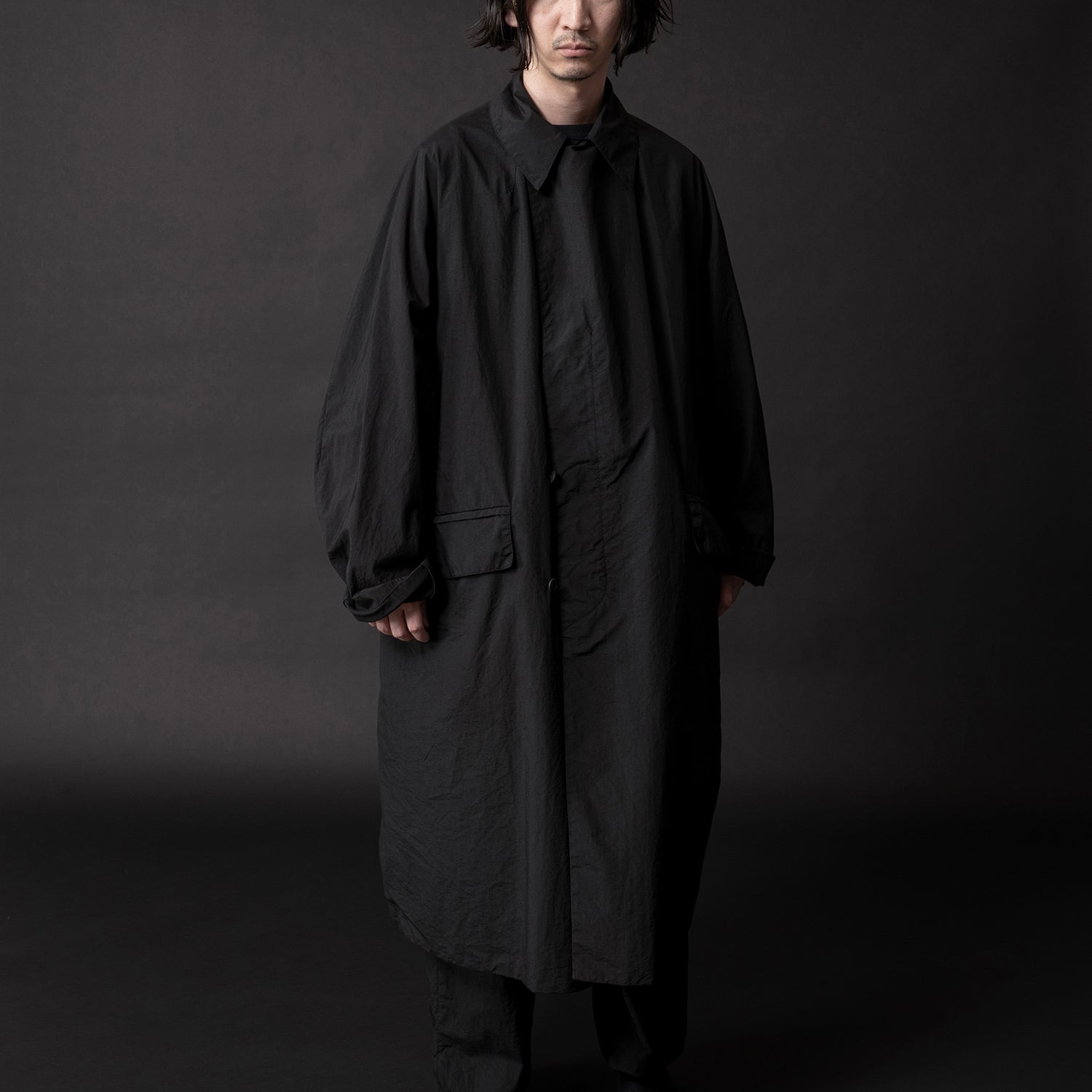 身幅をたっぷりと広く、着丈を長くしてゆとりを持たせたロングコート。