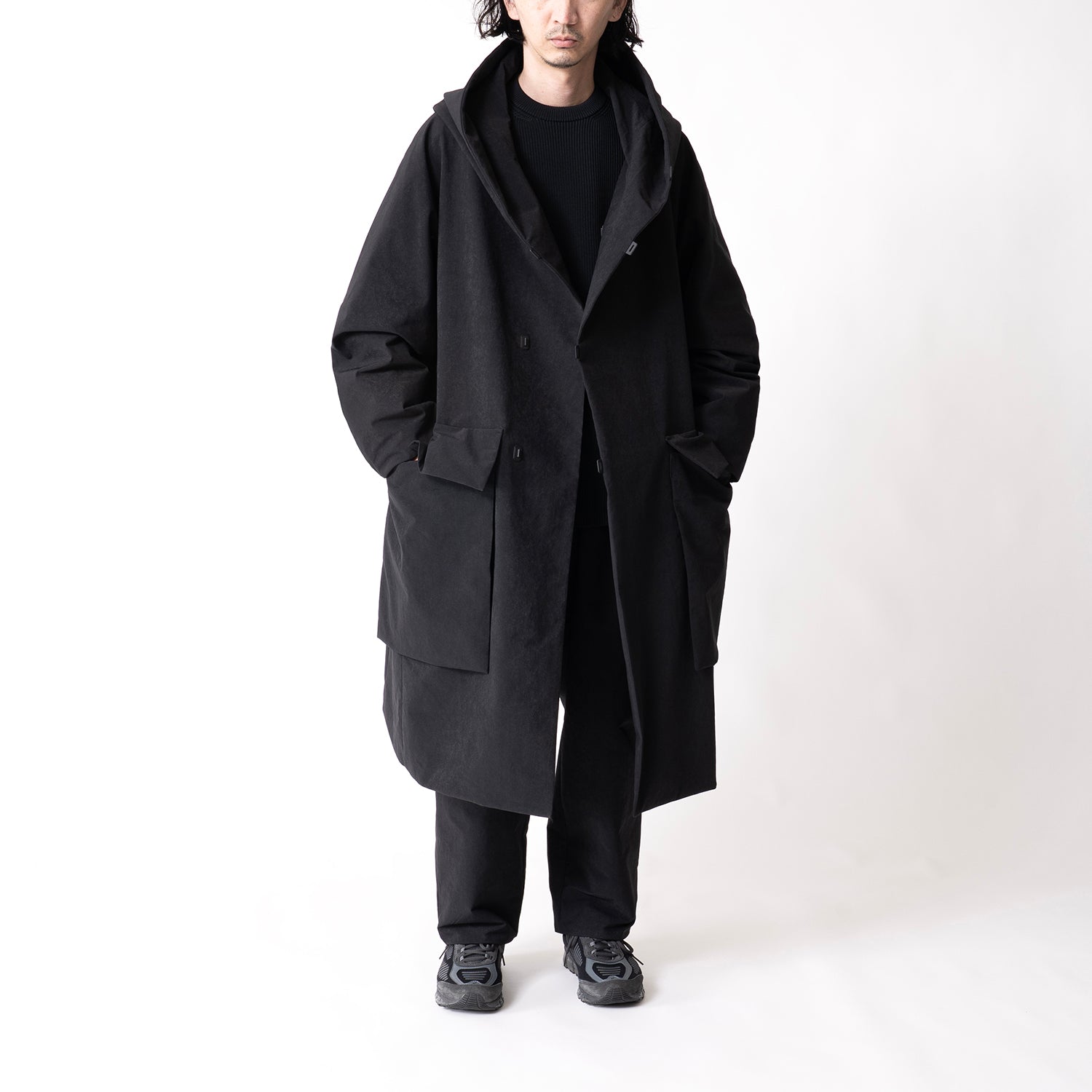 “傘も鞄も持たない“ をコンセプトに開発されたバリアライザープラスは、悪天候な時こそ手ぶらで出かけることを目的に開発された、冬季悪天候用アウター。