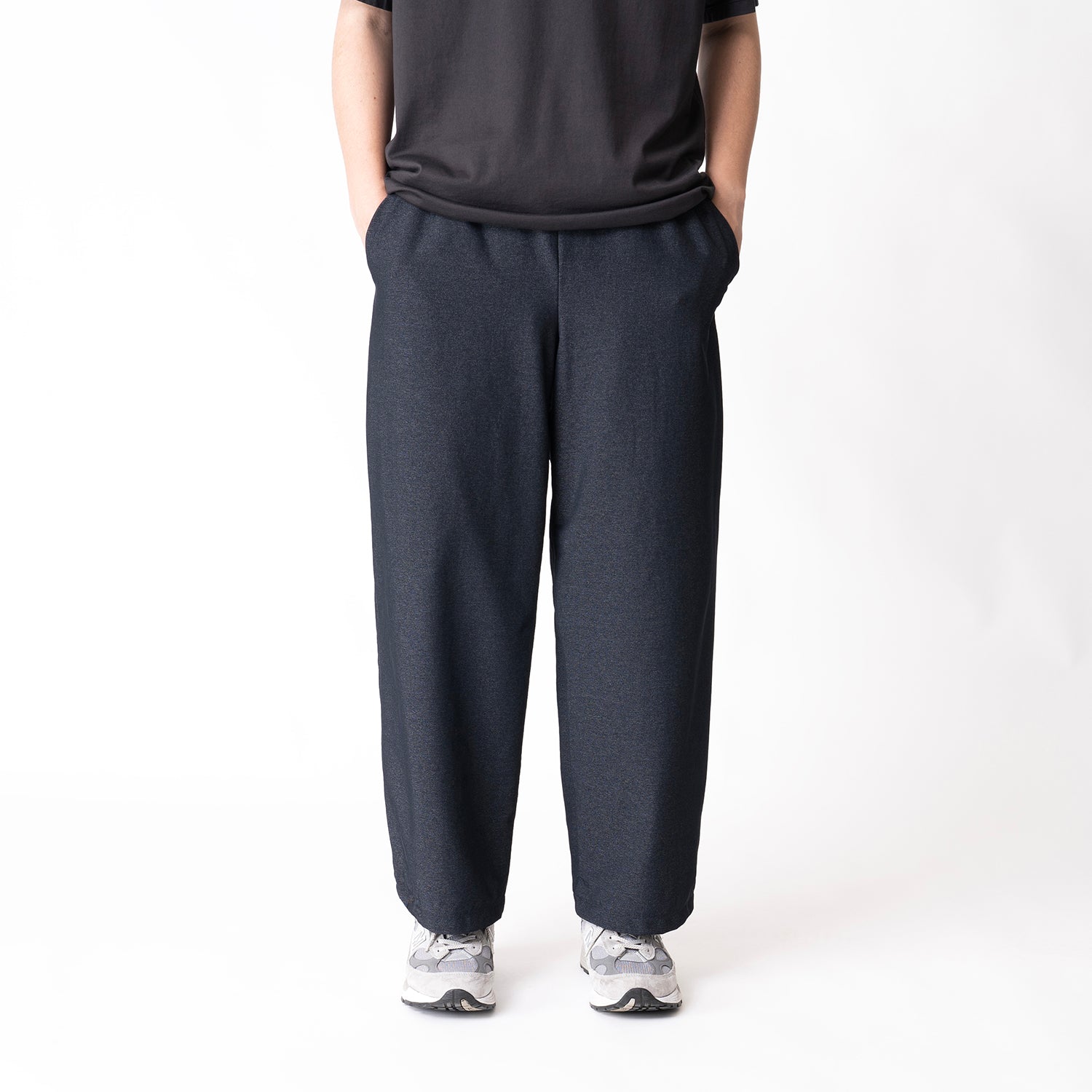腿から裾にかけてストンと落ちる様なワイドストレートの上品なボリューム感。