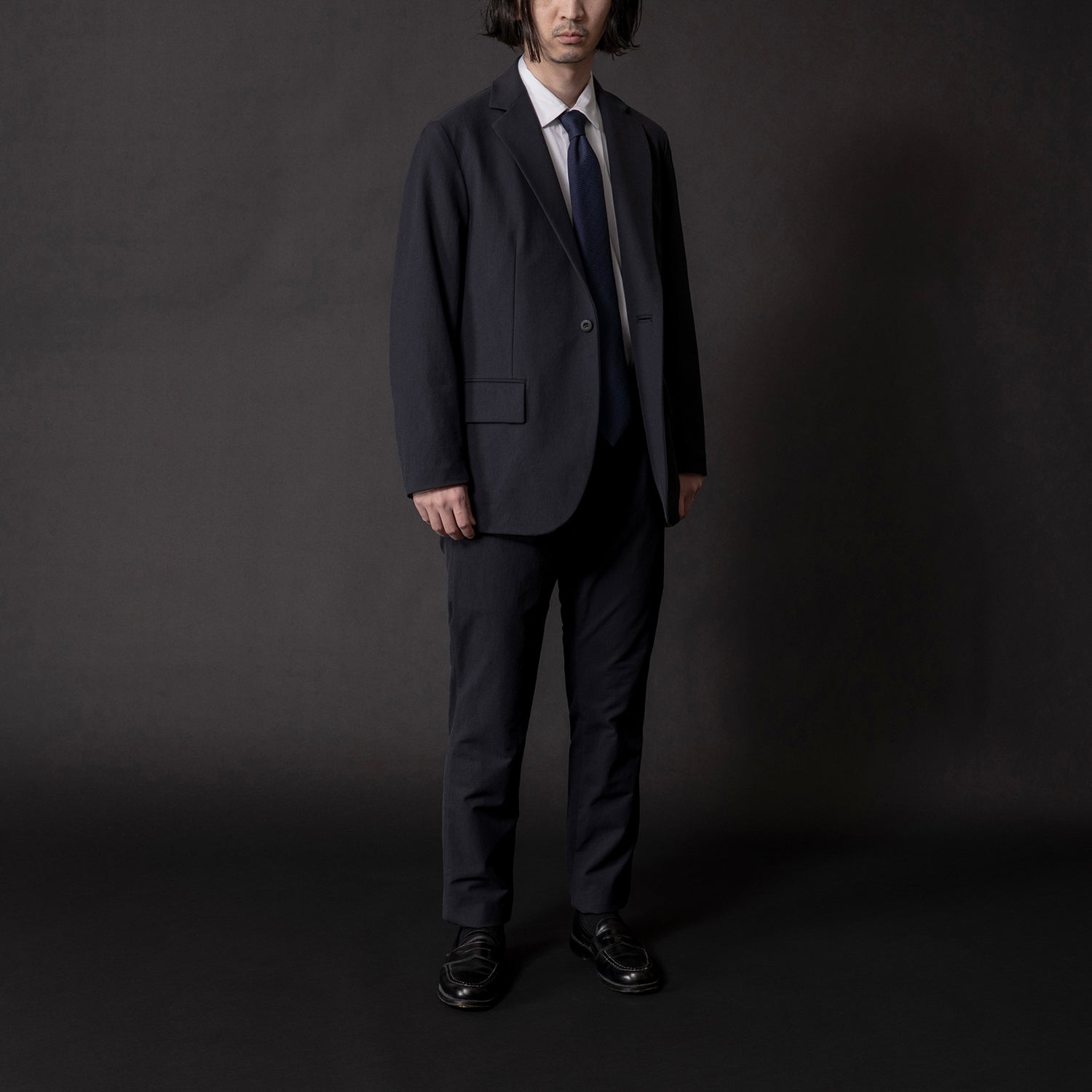 都市の明るんだ夜を実体化したかのような色彩は品格の中に静けさを内包し、着用者の印象を品よく匿名化します。