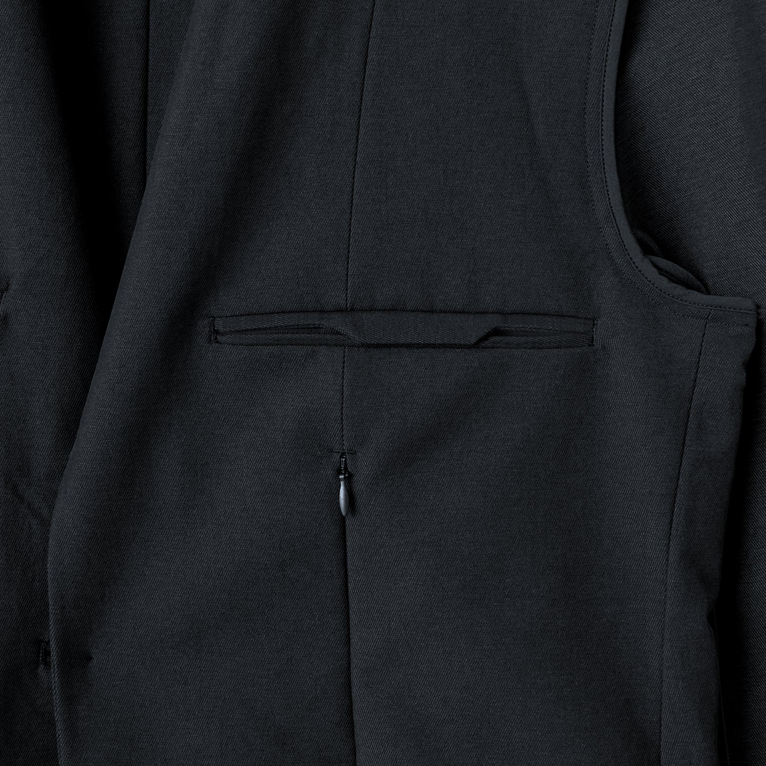 セットインスリーブ、切羽は無し、センターベントデザインを採用。