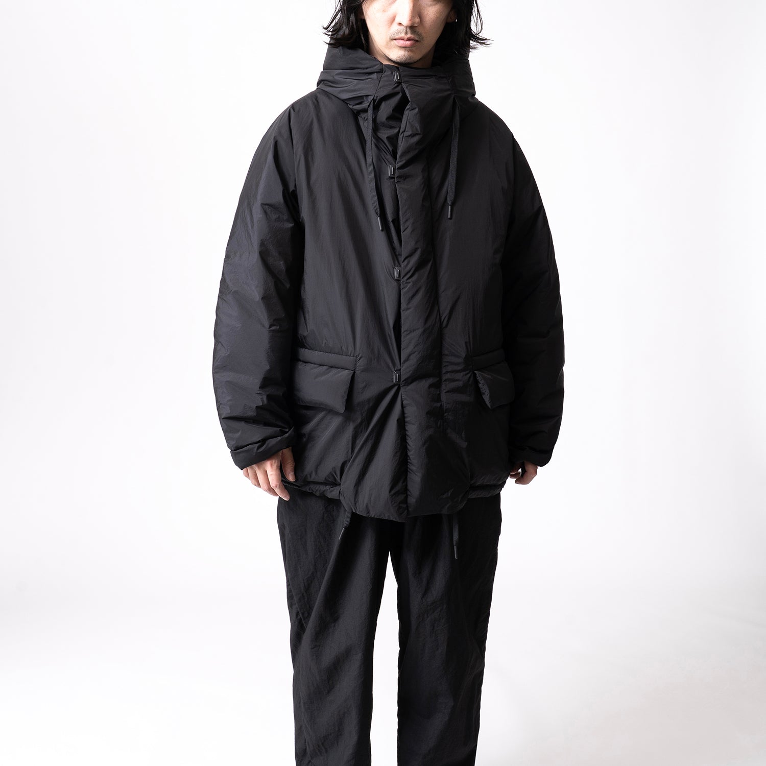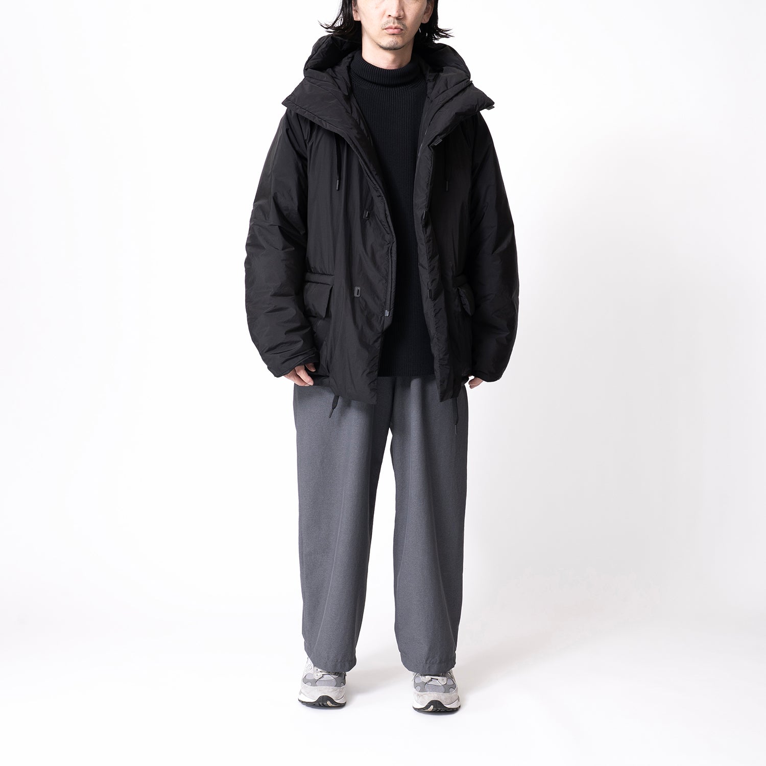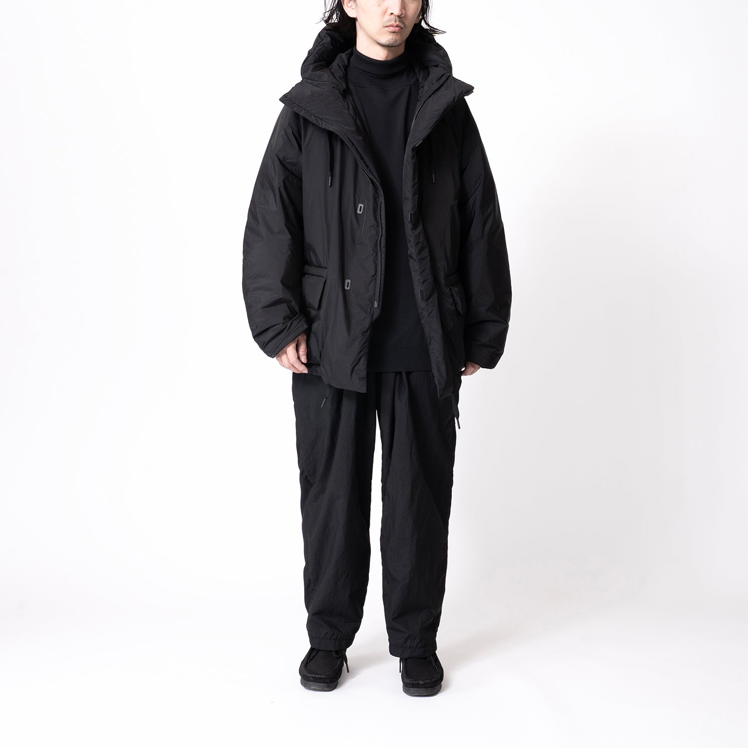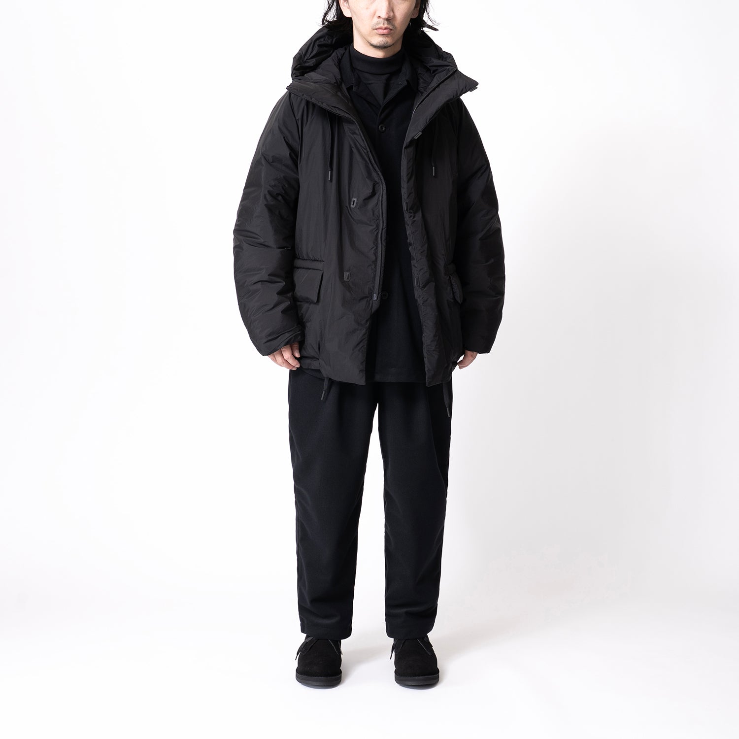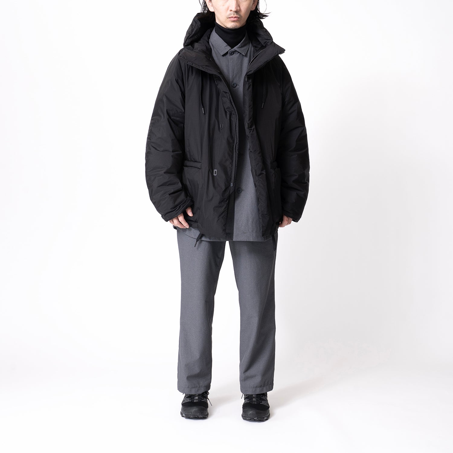 広めの身幅と短めの着丈でシルエットに特徴を持たせたフードブルゾン。