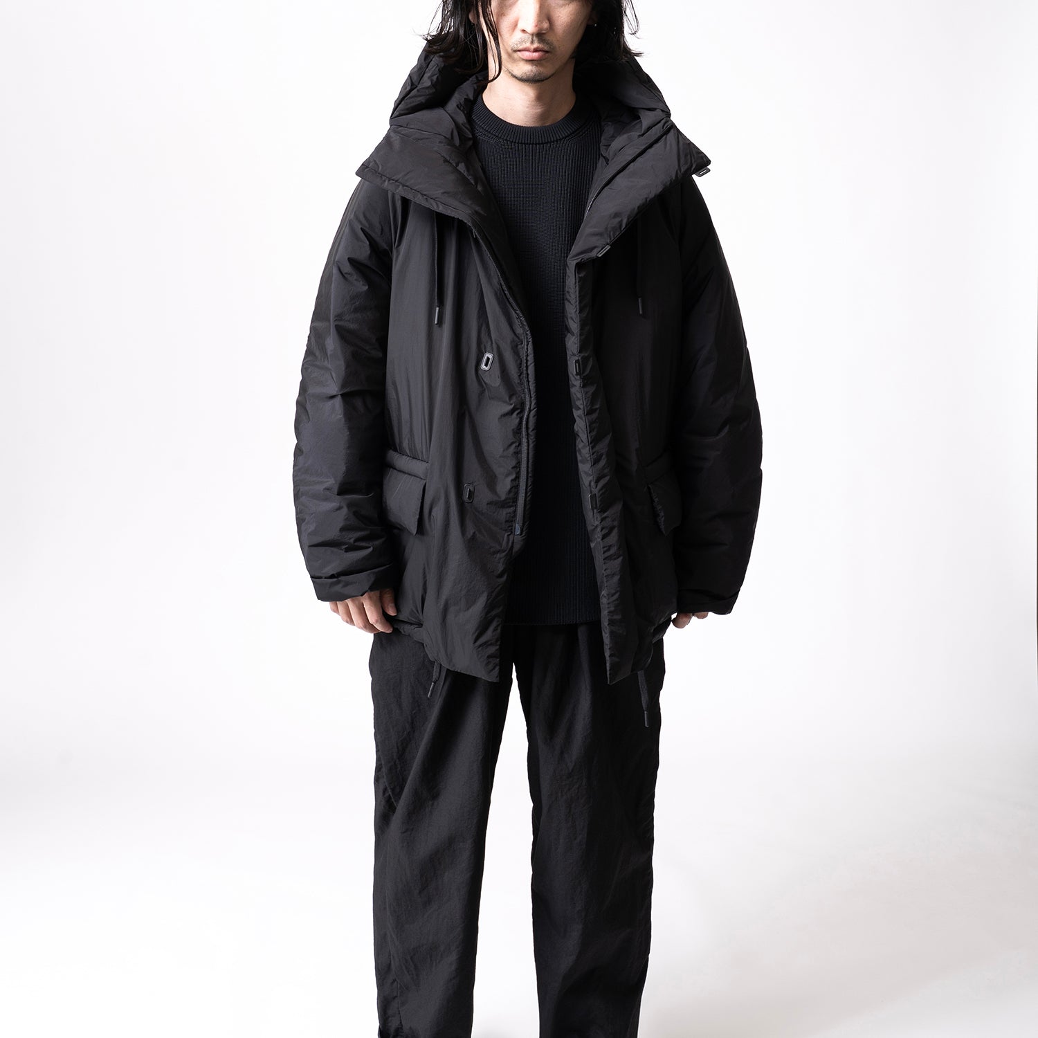 左右の前身頃にはおおぶりのファスナーポケットを4つ内蔵。