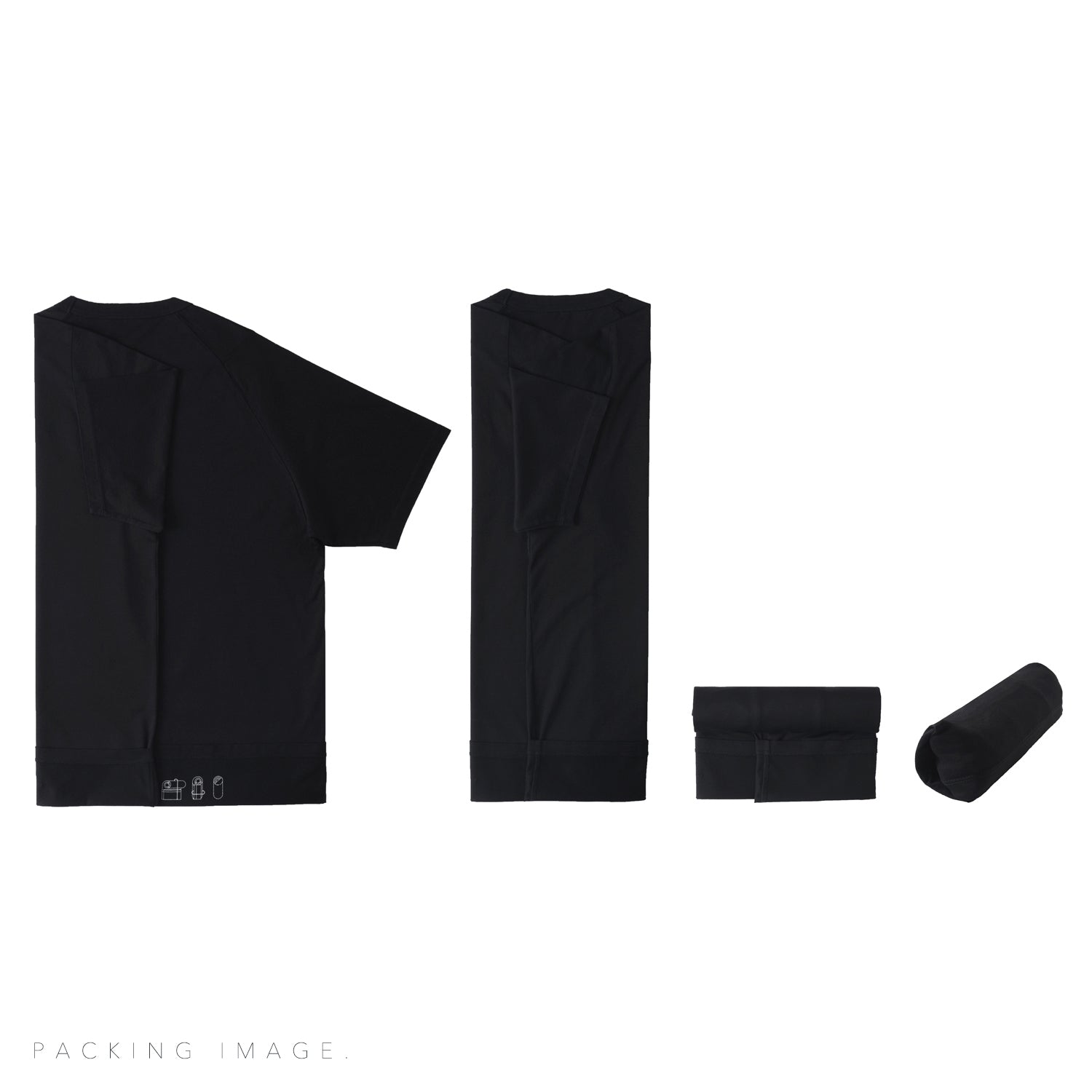 このTシャツは、腰内部にパッキングHOW TOがプリントされており筒状にパッキングが可能。